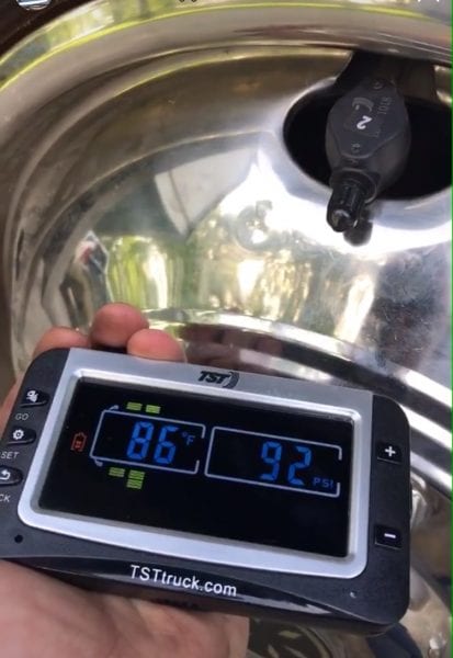 Our new tire pressure monitoring system (cool kids call it a TPMS, I’ve learned) measures the two most common causes of flat tires and blowouts: psi and temperature. And if the psi is too high or low or if the tires get too hot, an alarm will start going off.
