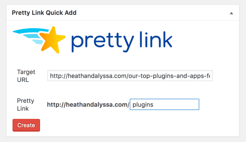 Pretty link is a way to make those long URLs shorter and prettier. Literally all I have to do is paste my long ugly URL and then create a pretty, short URL.