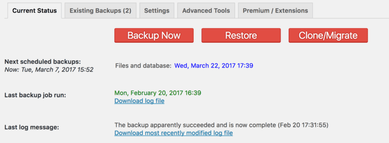 There are paid versions of this plugin, but we use the free version and it works just fine. We back up our website monthly, although now that I think about it I should probably up it to at least every two weeks so nothing gets lost.