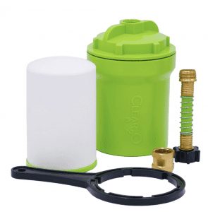 [wc_row][wc_column size=”one-half” position=”first”] [/wc_column][wc_column size=”one-half” position=”last”]We filter our water three times, starting with this DirtGuard filter by Clear2O. Our first week as RVers, we hooked up our motorhome to water, turned on the faucets, and brown sludge spewed from the pipes. Fortunately, we had clean water stored in our fresh tank because there was no way we could drink that water!