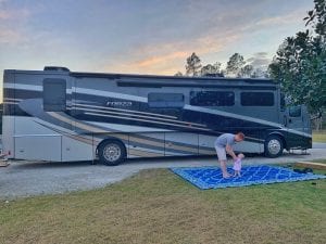 If you’re buying an RV, you probably value spending lots of time outdoors. Which is why you’ll want a good outdoor rug for sitting outside. We’ve used a few, but absolutely love this one because of how easy to store it is. It folds and rolls away easily into our storage bays, even though it’s 9′ x 12′.