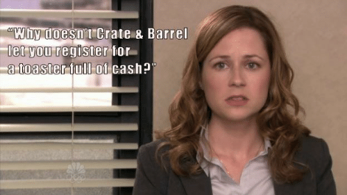 We needed the money if we wanted to make it to all fifty states and we wouldn’t have room to bring a bunch of wedding gifts in the RV anyway. Why not skip the middle man and just ask for cash?