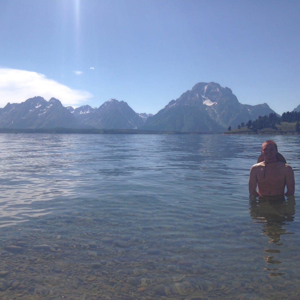 This campground has crazy lake and mountain views—if your RV is under 30 feet. We camped here in our first rig, which was 29-feet in length. Two deer came up to our window while I was cooking soup (in July, because it gets COLD in the Tetons) and Heath jumped in the lake as his “shower” since we didn’t have hookups. He said it was the coldest water he’s ever been in, but with the best view.